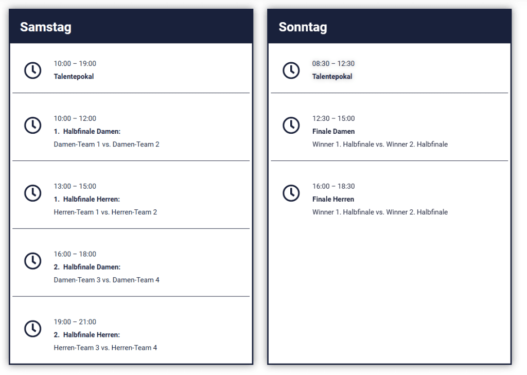 Der Zeitplan wurde nun veröffentlicht und verspricht Spannung für den ganzen Tag. Wer in den Halbfinals am Samstag antritt entscheidet sich übrigens an diesem Wochenende.